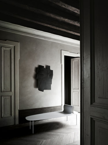 «Una lámina metálica rígida se vuelve ligera y flexible como si el metal fuera papel o tela». Parte de la superficie se levanta y se dobla para crear el respaldo de la silla.