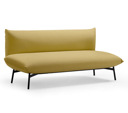 Sofá de tres plazas con patas de metal pintado. Asiento y respaldo tapizados en tela. El sofá Area también está disponible en la versión sin reposabrazos.