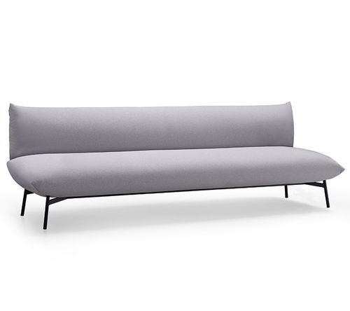 Sofá de tres plazas con patas de metal pintado. Asiento y respaldo tapizados en tela. El sofá Area también está disponible en la versión con reposabrazos.