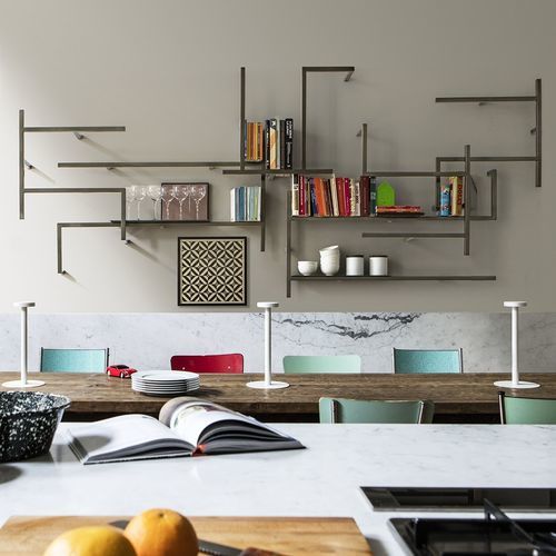 Antologia es una librería de hierro de 4 módulos (también angulares) para crear muchas composiciones, nunca iguales. Además es posible también insertar estantes para colocar algunos objetos. La estructura es en tubular cuadrado de 2,5×2,5 cm, acabados en blanco mate o pintado plomo brillante. Se han añadido 2 módulos adicionales para resolver la necesidad de colgar con un espejo o con un estante en un espacio reducido.