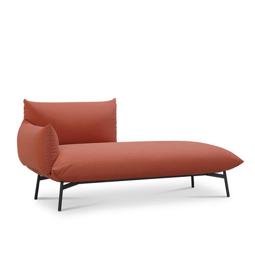 Chaise longue con patas de metal lacado. Asiento y respaldo tapizados en tela.