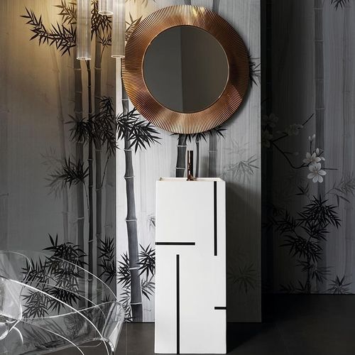 Espejo redondo con marco en transparente o de color, con su peculiar efecto plisado.