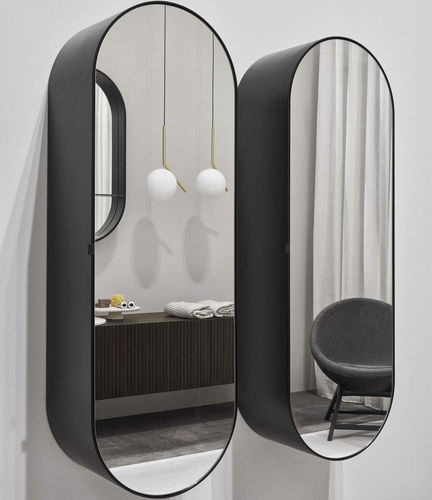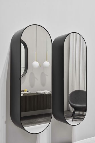 Grande espejo contenedor ovalado con marco lacado. Posibilidad de escoger el espejo bicolor, y posibilidad en 2 profundidades, Elio y Elio Slim.