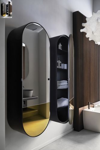 Grande espejo contenedor ovalado con marco lacado. Posibilidad de escoger el espejo bicolor, y posibilidad en 2 profundidades, Elio y Elio Slim.