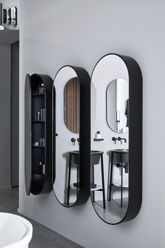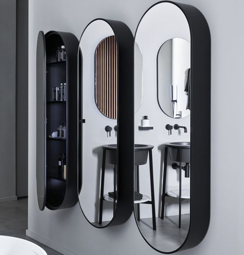Grande espejo contenedor ovalado con marco lacado. Posibilidad de escoger el espejo bicolor, y posibilidad en 2 profundidades, Elio y Elio Slim.