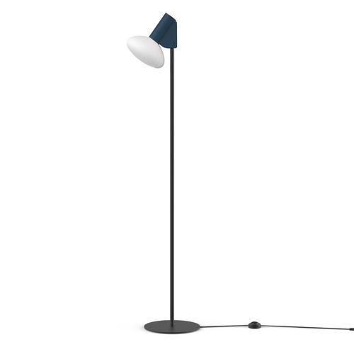 Lámpara de pie Mug de luz difusa directa. El difusor es de cristal blanco mate. El soporte es de metal en la única variante en negro. En el cable de alimentación el interruptor de encendido / apagado.
