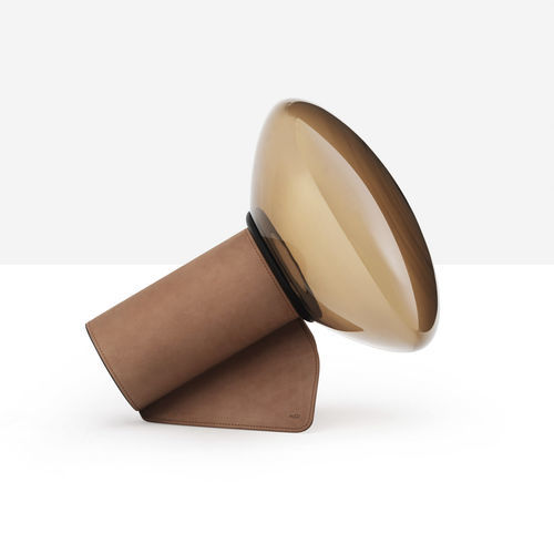 Lámpara Mug XL con inserto en piel o piel toscana y cristal soplado disponible en versiones ahumada y bronce.