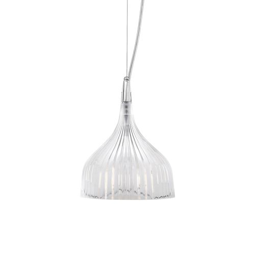 Una lámpara de diseño simple y esencial, disponible en dos versiones: como aplique y de techo. El aplique se compone de una mampara en forma de tulipán plisado, disponible en distintos colores, con un brazo de metal cromado de 11 cm de longitud. La lámpara É de techo tiene la mampara plisada mientras que el soporte es de metal cromado. El cable se puede regular en altura, desde un mínimo de 20 cm a un máximo de 220 cm. Para ambas versiones la potencia de la lámpara es de 40 W.