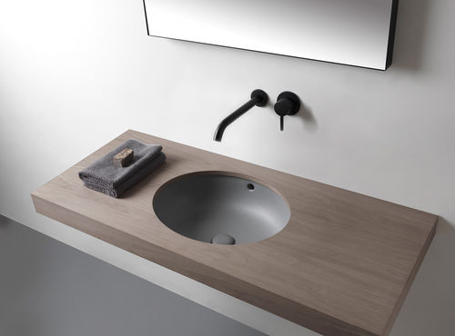 Lavabo bajo encimera, con rebosadero, disponible en varios acabados cerámicos.