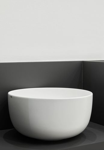 Lavabo Era redondo terminado en todos los lados. Disponible en varios acabados cerámicos.