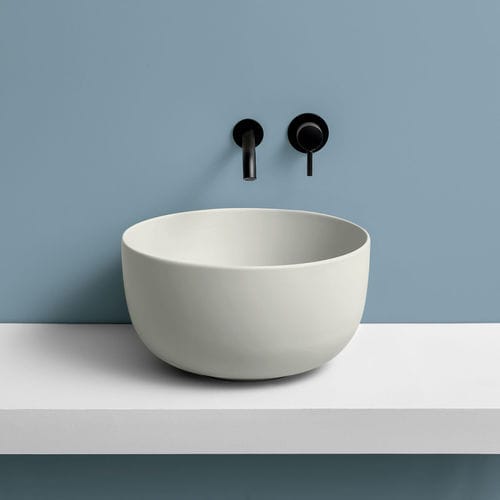Lavabo de apoyo, sin rebosadero, refinido en todos los lados y disponible en múltiples acabados cerámicos.