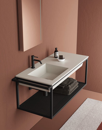 Lavabo sin rebosadero, lado derecho o izquierdo, para instalación suspendida y de apoyo.