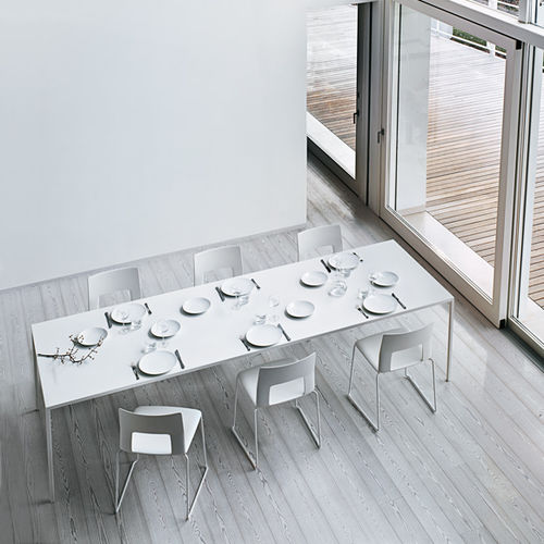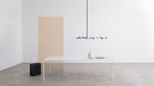 Mesa arquetípica, 25 toma su nombre del grosor mínimo del tablero y la pata, precisamente 25 mm. Esencia absoluta de la vanguardia, 25 ganó el premio de diseño Compasso d’Oro 2014 por «la sensación de asombro que evoca esta mesa al comparar su esbeltez con las considerables longitudes que puede alcanzar»