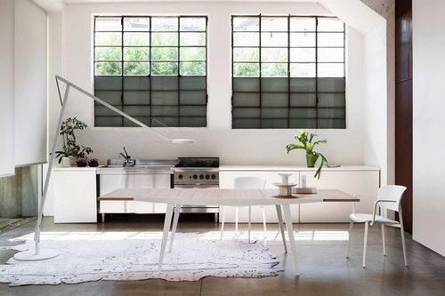 La mesa de comedor extensible es siempre un reto de diseño al combinar el equilibrio del funcionamiento técnico y formal. Fourmore hace una síntesis de este equilibrio con un gesto sencillo del mecanismo, junto con el rigor estético y lineal, donde la mesa mantiene su proporción, tanto en la versión cerrada como en la extendida.