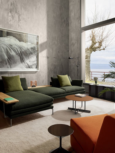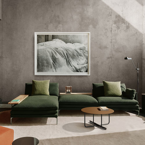 Estructura en acero pintado en negro mate. Sobres en chapa de acero recubiertas de cuero