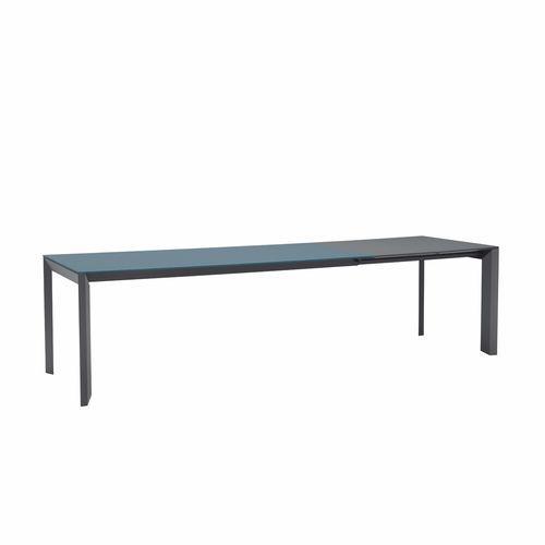 Mesa extensible Apollo con base deslizante de acero pintado. Tablero de melamina, madera, vidrio o cerámica.
