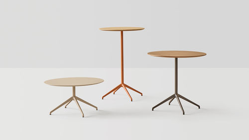Las mesas BARLIS se caracterizan por su ligera base de aluminio de cuatro radios, disponible en 3 alturas y en una amplia gama de colores. Las bases pueden combinarse con sobres redondos o cuadrados disponibles en todos los materiales y colores de nuestra gama superior. Existen versiones con sobres fijos o abatibles. Las mesas con sobres de HPL también son aptas para uso en exteriores.