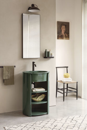 In this image Tiberio washbasin unit from the I Catini collection designed by Andrea Parisio and Giuseppe Pezzano for Ceramica Cielo, here propsed in the Alga finish.