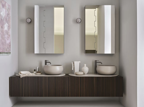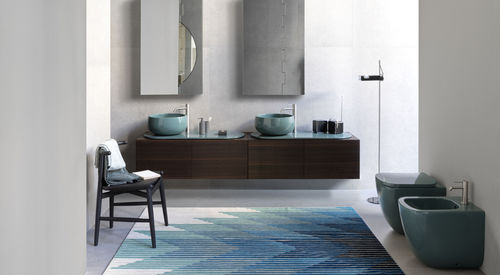 Caracterizado por una elegancia que ama la combinación de líneas rigurosas y simétricas y formas suaves, Delfo se expresa con el poder de los materiales, en un juego de combinaciones entre cerámica y madera, que da vida a diferentes interpretaciones de un solo modelo, unidos por La misma visión estética y la misma capacidad de releer el material cerámico de una manera contemporánea.