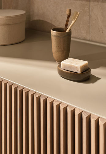 Lavabo Filo con Mueble con frontal de cajón en listones de madera maciza