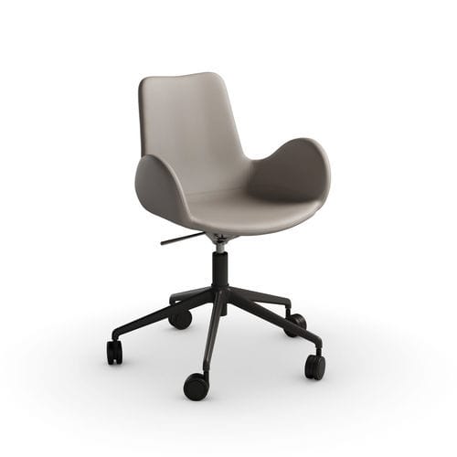 Sillón de trabajo Dalia giratorio y regulable en altura con base de cinco estrellas en metal lacado. Respaldo bajo.