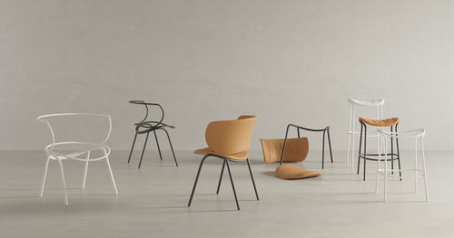 La colección de asientos diseñados por Stefan Diez incluye butaca y taburete en altura bar y counter. Disponible en piel y en diferentes tapizados.