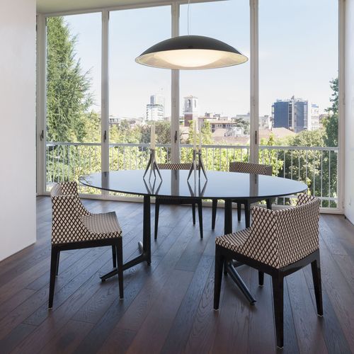La silla Mademoiselle se viste de la amplia gama de tejidos Memphis, diseño de Ettore Sottsass y Nathalie du Pasquier.
