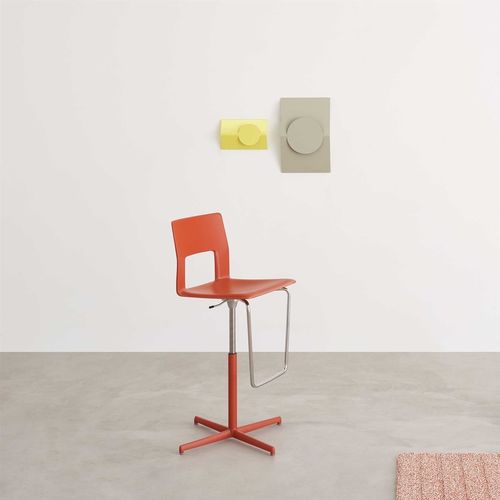 Sistema de asientos y taburete con carcasa de BAYDUR®, con o sin apoyabrazos. Bastidor con 4 patas de tubo de acero, varilla de acero o base giratoria con altura ajustable.