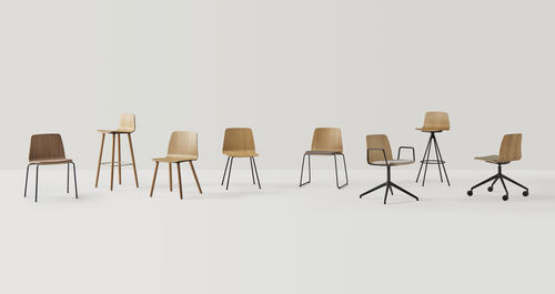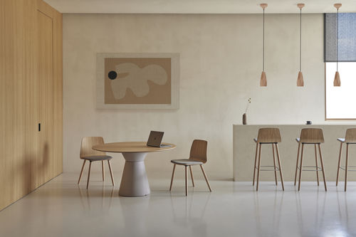 La colección VARYA WOOD es una colección transversal de sillas de madera, taburetes y bancos que amplía las posibilidades de la amplia familia VARYA manteniendo el mismo espíritu transversal, refinado y atemporal. Con un diseño neutral pero amigable y acogedor gracias al uso de chapas de madera natural, esta colección está diseñada para inspirar ambientes acogedores y versátiles tanto en espacios residenciales como públicos. Diferentes sillas, sillones, taburetes y bancos se generan combinando elegantes asientos de madera con una amplia gama de bases que configuran una de las familias más grandes y completas del mercado.