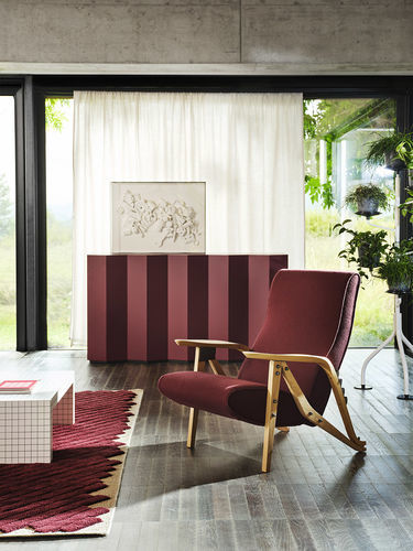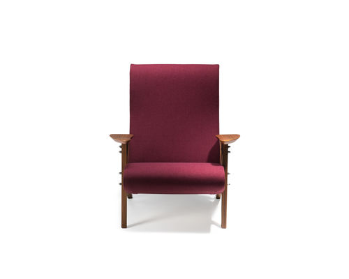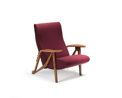 Estructura de fresno teñido roble o teñido nogal Canaletto. Herrajes de latón bronceado. Asiento regulable en cuatro posiciones. Acolchado de poliuretano/fibra poliéster termounida