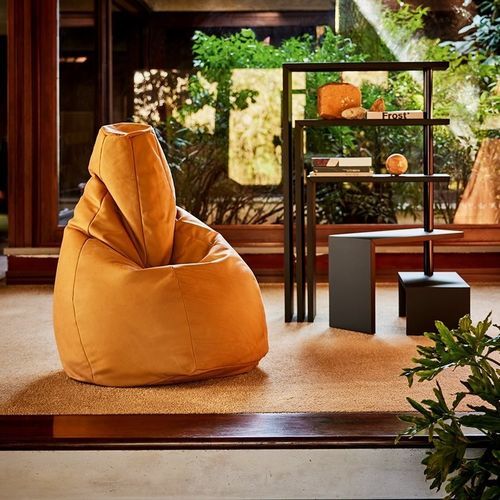 Bolsa rellena de bolitas de poliestirol expanso de alta resistencia. Tapizado en tejdo Tux, en Vip (tambien para exteriores, antibacteriano y antimancha con tratamiento Permablock 3®) y piel.