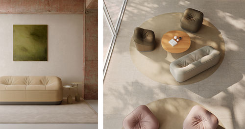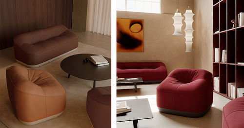 Cubow es una pieza que juega con la contraposición entre el volumen geométrico y las líneas orgánicas. La colección, formada por butaca y sofá, otorga al tejido un papel protagonista, definiendo la silueta, marcada por el contraste entre sus laterales lisos y la zona de asiento de efecto soft, rematada por una costura vista. Los tres nudos transversales generan una arruga genuina, que marca la personalidad de la colección.