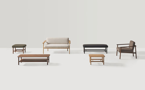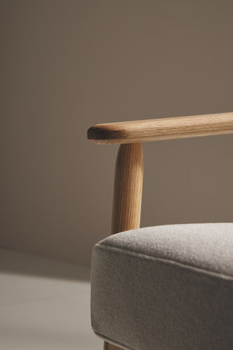 Wudi es una colección de butacas, bancos y mesas auxiliares para zonas lounge que combinan tradición y modernidad a través del uso de la madera. La butaca es un diseño elegante, atemporal y cómodo, caracterizado por unos brazos expresivos. Un respaldo que se apoya sobre un tejido tensado a modo de vela contribuye al espíritu ligero y relajado de la pieza. La estructura redondeada de madera maciza irradia calidez y suaviza su imagen, mientras que el tapizado y los detalles de alta calidad le confieren una gran elegancia. La colección se completa con originales bancos tapizados y mesas auxiliares que se integran con facilidad en múltiples espacios.