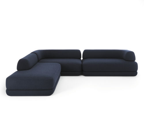 Sofás monobloque y modulares, puf y cojín Estructura de madera. Asiento, respaldo y base de poliuretano a densidades diferenciadas/Dacron Du Pont. Cojín de copos de poliéster regenerado y regenerable. Tapizado desenfundable de tejido.