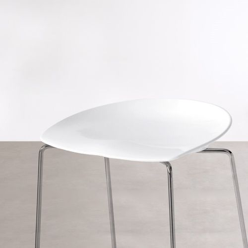 Taburete con asiento en nylon blanco brillante o negro brillante. Taburete con estructura en varilla de acero cromado o lacado.